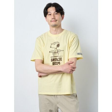 【 PEANUTS公式ライセンスデザインTシャツ 】スヌーピーが登場する、世界中から愛されるコミック「PEANUTS」の公式ライセンスデザインを用いた、40/2天竺を使用した半袖Tシャツ。海辺で自由な時間を満喫する、"BEACH BUM"なスヌーピーのイラストをTシャツ前面に大胆にプリント。遊び心ある1着でプレゼントにもおすすめ。