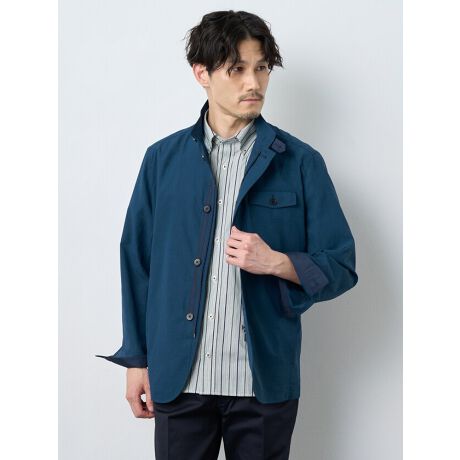 [型番:7251131]【 夏に便利なコンバチブルゾン 】空羽織ポリエステル生地を使用したサマーブルゾン。タテ方向に畝上の繊細な隙間をつくった組織が特徴で、風通しのよい着用感が魅力。また、撚りをかけたポリエステル糸によるサラサラとした肌触りと、しわになりにくいのが特徴。着脱の機会が増える夏のアウターとして持ち運びに便利な1着。スタンドカラーの衿は折り返してもサマになるコンバチ仕様。所々に配した別布もさりげないポイントに。