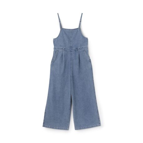 デニム生地で仕立てたカジュアルなデニムサロペットです。