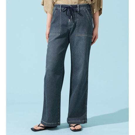 広がりすぎずストンと落ちる、脚長効果を追求したワイドシルエットです。「丈をもう少し長く」というご要望にお応えし、レングスを従来より3cmプラス。ウエストは紐付きのイージー仕様で、リラックスした穿き心地と自在なサイズ調整を両立しました。