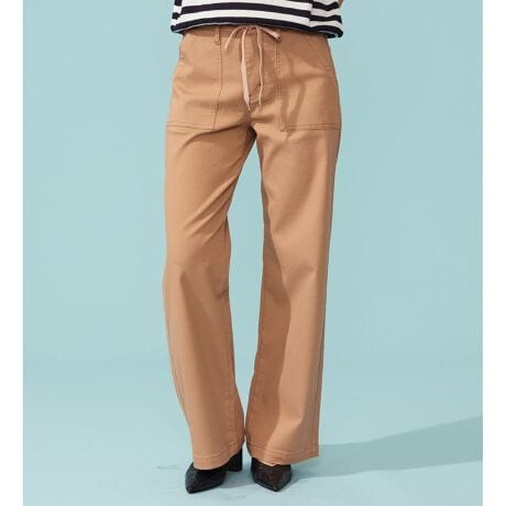 広がりすぎずストンと落ちる、脚長効果を追求したワイドシルエットです。「丈をもう少し長く」というご要望にお応えし、レングスを従来より3cmプラス。ウエストは紐付きのイージー仕様で、リラックスした穿き心地と自在なサイズ調整を両立しました。