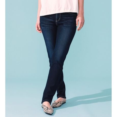 シルエットは腰まわりからヒザにかけては脚のラインにフィットし、ヒザから下は直線的なラインのスリムストレート。ヒザ下を細く見せ、ふくらはぎの丸みをカバーしてくれるシルエットです。
