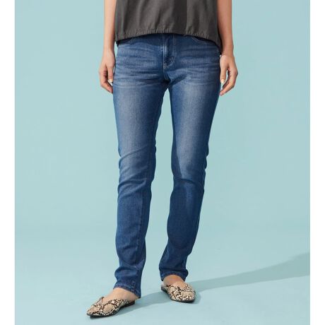 シルエットは腰まわりからヒザにかけては脚のラインにフィットし、ヒザから下は直線的なラインのスリムストレート。ヒザ下を細く見せ、ふくらはぎの丸みをカバーしてくれるシルエットです。