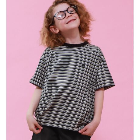 ボーダーがコーディネートのポイントになるため、シンプルなデニムパンツと合わせるだけで相性抜群のスタイリングが完成します。ベーシックなシルエットを活かして、オーバーオールやジャンパースカートのインナーとして活用するのもおすすめです。足元にスニーカーを合わせれば、都会的なキッズカジュアルを楽しめます。。