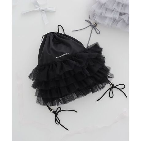 微光沢のある生地に、ボリュームたっぷりのチュールフリルをあしらったナップサック。