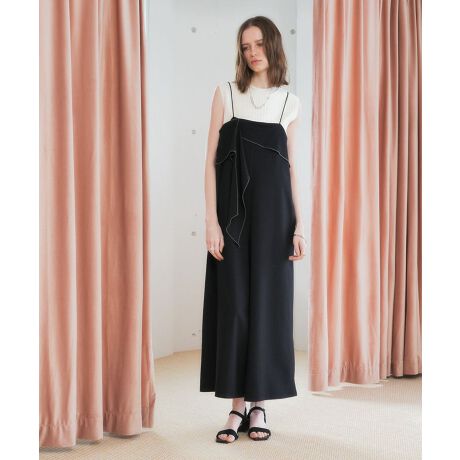 アシンメトリーな立体ラッフルデザインが印象的なオールインワン。