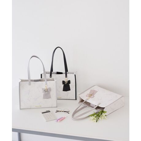 「F」ロゴ付きのリボンチャームは取り外し可能なので、シーンに合わせてお使いいただけます。