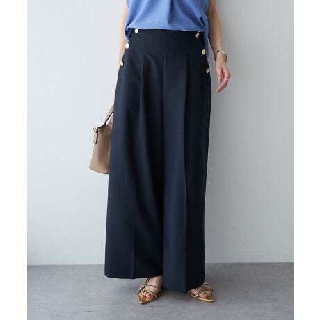 ワイドストレートのシルエットが、上品で洗練された印象を演出する大人のマリンパンツ。