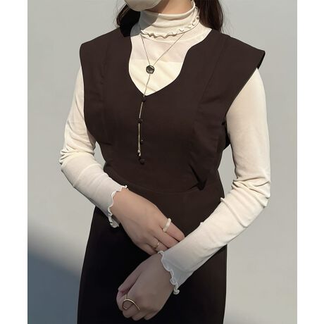 リネン混ニュアンスフリルワンピース【一部ぺチスカートセット】