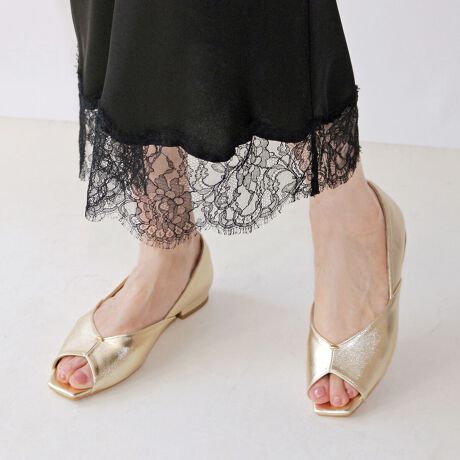 【26春夏新作】スクエアオープントゥVカットフラットシューズ【低反発スポンジ入り】