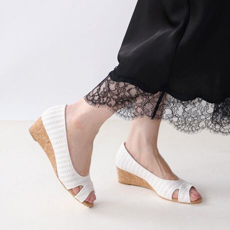 【26春夏新作】オープントゥストローウエッジパンプス【低反発スポンジ入り】