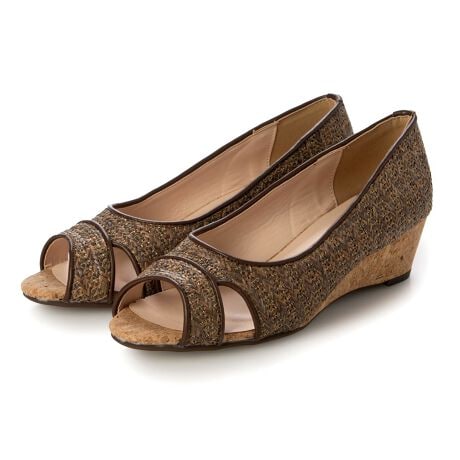 【26春夏新作】オープントゥストローウエッジパンプス【低反発スポンジ入り】