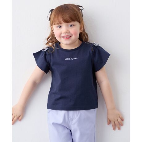 anyfam/anykids/エニィファム/エニィファムキッズ/キッズ/トップス/半袖/Tシャツ/ロゴ/プリント/リボン/オフショルダー/コットン/人気/通園/通学/おでかけ/デイリー/女の子/ガール/サスティナブル商品/トレンド