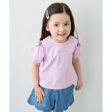 anyfam/anykids/エニィファム/エニィファムキッズ/キッズ/トップス/半袖/Tシャツ/ロゴ/プリント/リボン/オフショルダー/コットン/人気/通園/通学/おでかけ/デイリー/女の子/ガール/サスティナブル商品/トレンド