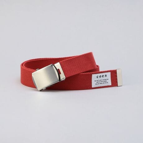 〇シンプルなデザインに仕上げたテープベルト。