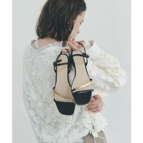 華やかなゴールドバーがモードな印象を引き立て、足元に洗練されたアクセントを添えるデザインです。