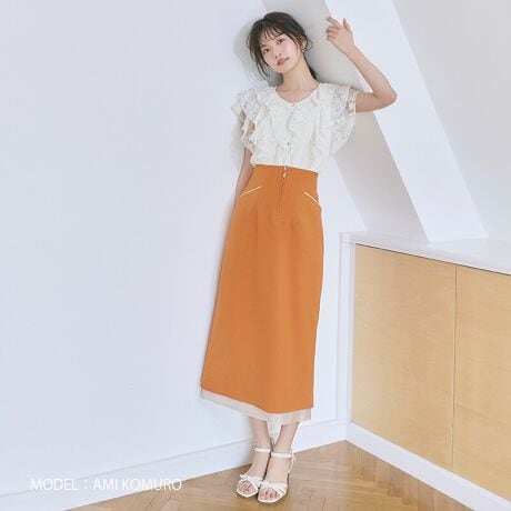 レイヤード風のスタイリングを楽しめる裾シアースカート。背面にはスリットを施しており、スタイリングに抜け感を演出します。すとんとしたタイトシルエットがポイント。トップスをタックインしたメリハリのあるコーディネートがおすすめです。