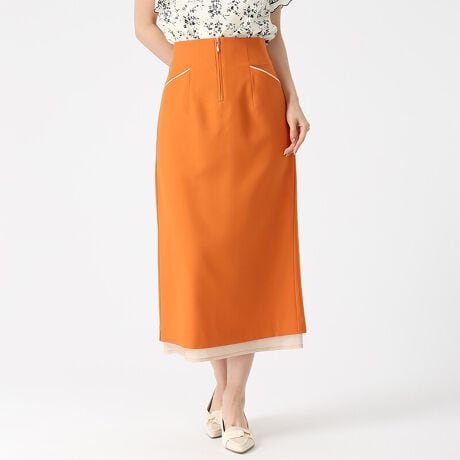 レイヤード風のスタイリングを楽しめる裾シアースカート。背面にはスリットを施しており、スタイリングに抜け感を演出します。すとんとしたタイトシルエットがポイント。トップスをタックインしたメリハリのあるコーディネートがおすすめです。