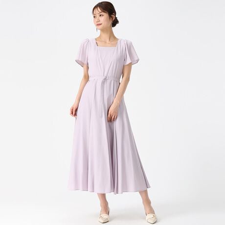 2026春夏新作 スクエアネックバックリボンAラインワンピース