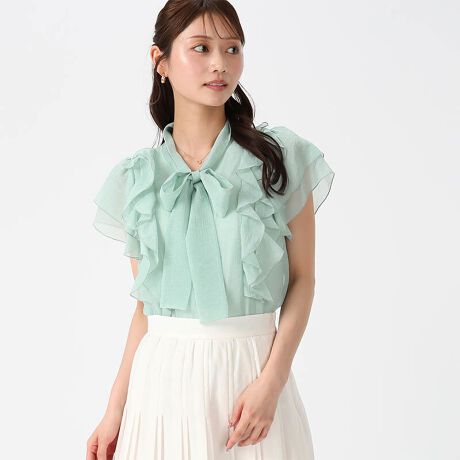 2026春夏新作 ボウタイフリルシアーラメブラウス