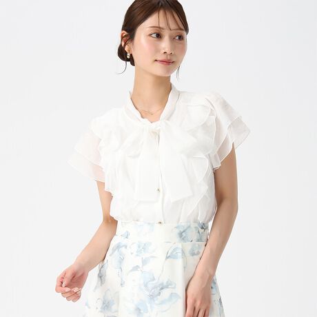 2026春夏新作 ボウタイフリルシアーラメブラウス