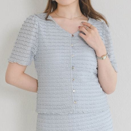 凹凸感のあるぽこぽことした素材が、一枚で今季らしく着映えるカットトップス。