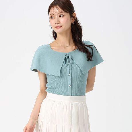 ひらりとしたケープデザインが女性らしさを演出するニット。肩まわりに程よいボリュームが出るので一枚でも華やかに見え、シンプルなボトムと合わせるだけでコーデがまとまります。デイリーからお出かけまで幅広く活躍するアイテムです。