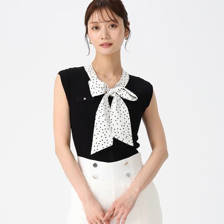 2026春夏新作 シャツボウタイフレンチスリーブニット
