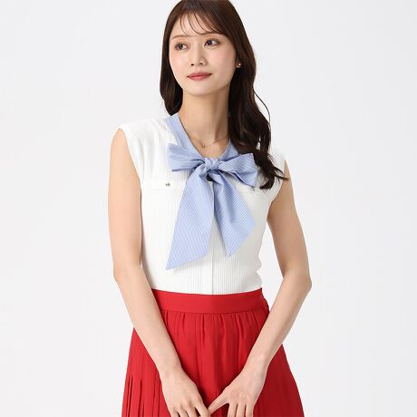 2026春夏新作 シャツボウタイフレンチスリーブニット