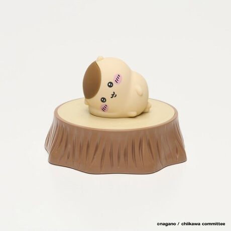 切り株デザインの台座の上にマスコットを置くだけでライトが点灯する、シンプルで使いやすい仕様です。