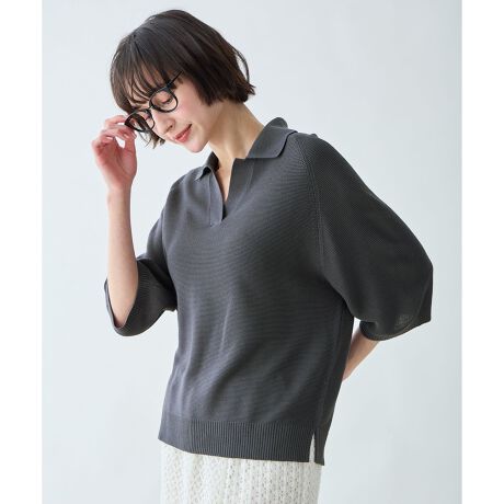 スキッパーがさりげない抜け感に!ドライタッチで快適なニット