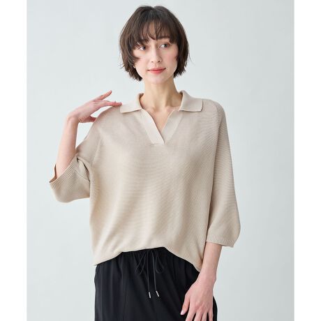 スキッパーがさりげない抜け感に!ドライタッチで快適なニット