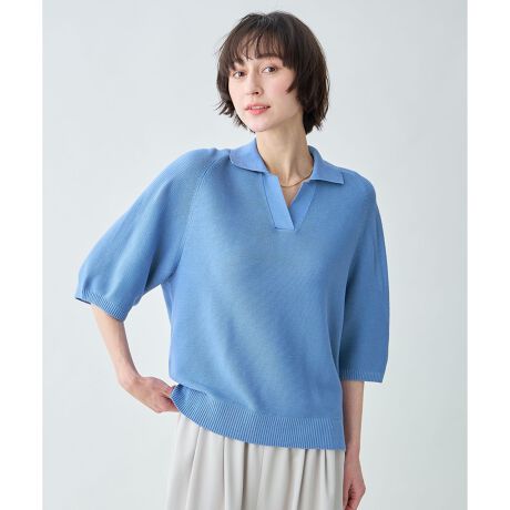 スキッパーがさりげない抜け感に!ドライタッチで快適なニット