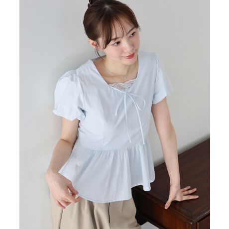フェミニンなディテールを詰め込んだフロントリボンペプラムブラウス