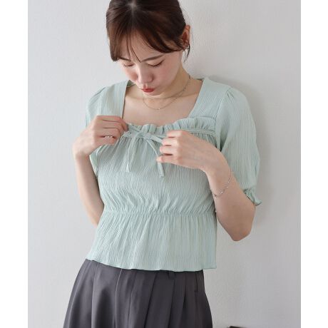 たっぷりと施されたシャーリングが、表面感のある豊かな表情を作り出すフェミニンなブラウス。