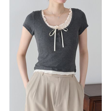 ギャザーリボンレイヤードTシャツ