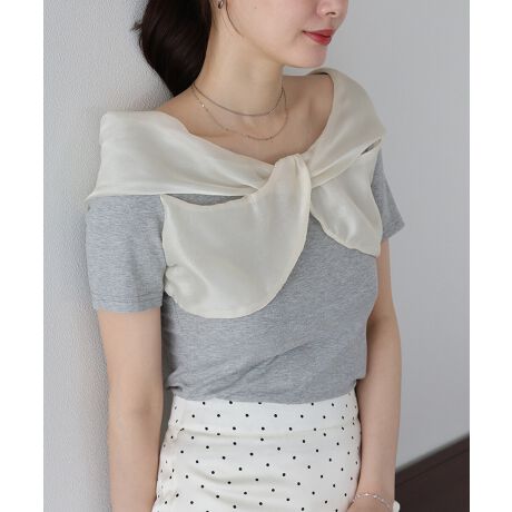 ほどよく甘い大人ガーリーなシアーリボンドッキングカットソー