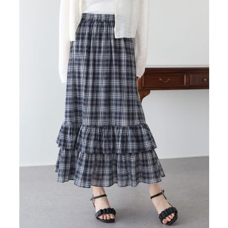ナチュラルな風合いと、春夏らしい軽やかさが魅力のチェック柄ティアードスカート。