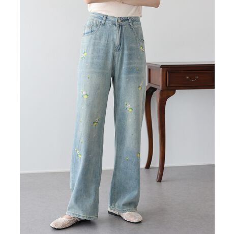 フラワー刺繍&スタッズが大人かわいいデニムパンツ