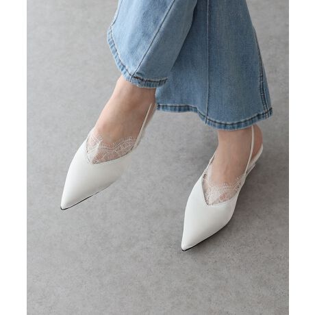 履き口から繊細なレースを覗かせた、エレガントでレディな表情が魅力のパンプス。
