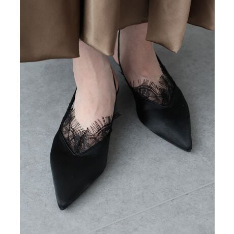 繊細なスカラップレースがコーデのポイントになるミュール