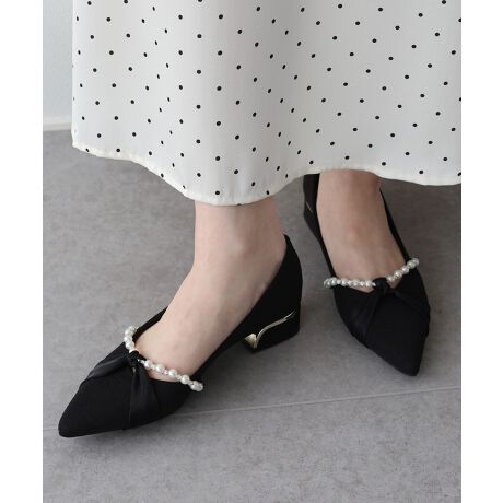 リボンの中心にはパールとビジューを贅沢に連ね、ジュエリーのような煌めきで足元を華やかに彩ります。