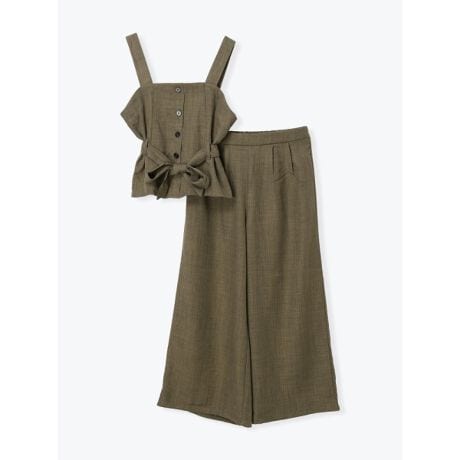 [SET]麻調ウエストリボンビスチェ×イージーパンツ