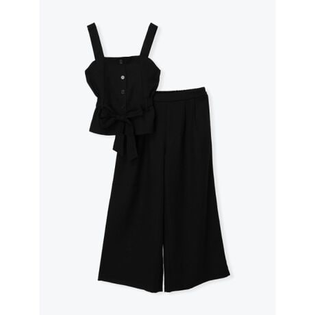 [SET]麻調ウエストリボンビスチェ×イージーパンツ