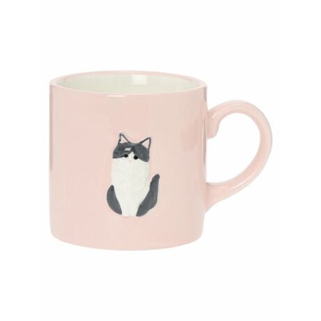 ハチワレネコのモチーフがアクセントになったマグカップ。