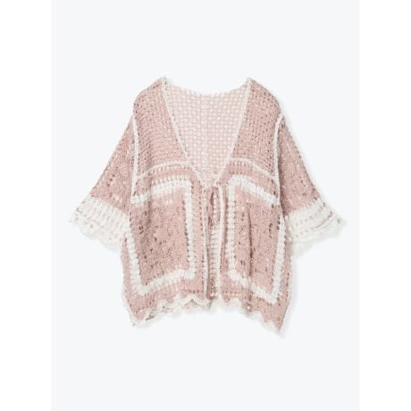 [型番:26550737398]カギ編み風の透かし柄が軽やかな印象の半袖カーディガン。ゆとりのあるシルエットで、さっと羽織りやすい一枚です。タンクトップやキャミソールの上に合わせて抜け感を出したり、ハイウエストのパンツと合わせるとバランスよくまとまりますです。モデル(アイボリー着用)身長:165cmMサイズ着用