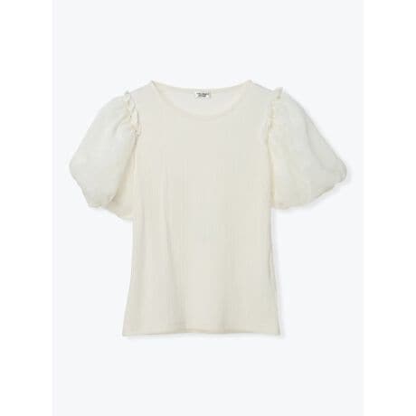 [型番:26550724642]テレコ素材の身頃と立体感のあるスクエアスリーブが印象的なトップス。身頃はすっきりとしたシルエットで、メリハリのあるバランスに仕上げた一枚です。ハイウエストのワイドパンツやフレアスカートと合わせるとバランスが取りやすく、タイトスカートを合わせると縦のラインが強調されてすっきり見えます。