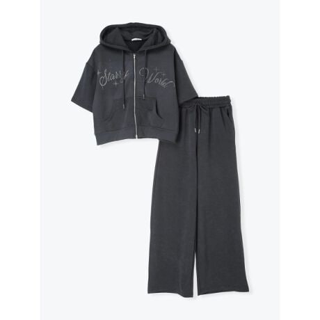 [SET]裏毛ルーズ半袖パーカー×スウェットパンツ