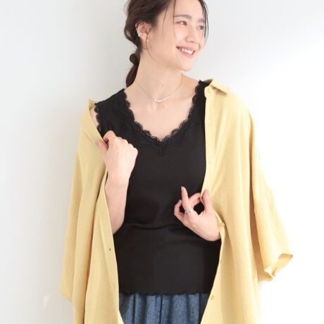 快適な着心地と女性らしさを演出するレース使い リブタンクトップ