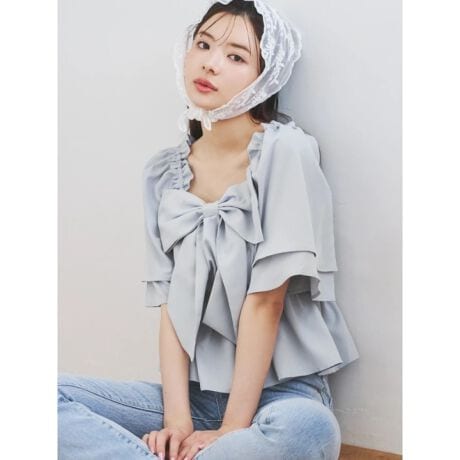 [型番:26550738875]大きめのリボンが目を引くオフショルダープルオーバー。デコルテをきれいに見せるデザインで、女性らしい印象に仕上げた一枚です。ハイウエストのデニムやワイドパンツを合わせるとバランスが取りやすく、タイトスカートを合わせるとすっきりとしたシルエットにまとまります。モデル(ライトブルー着用)身長:165cmMサイズ着用